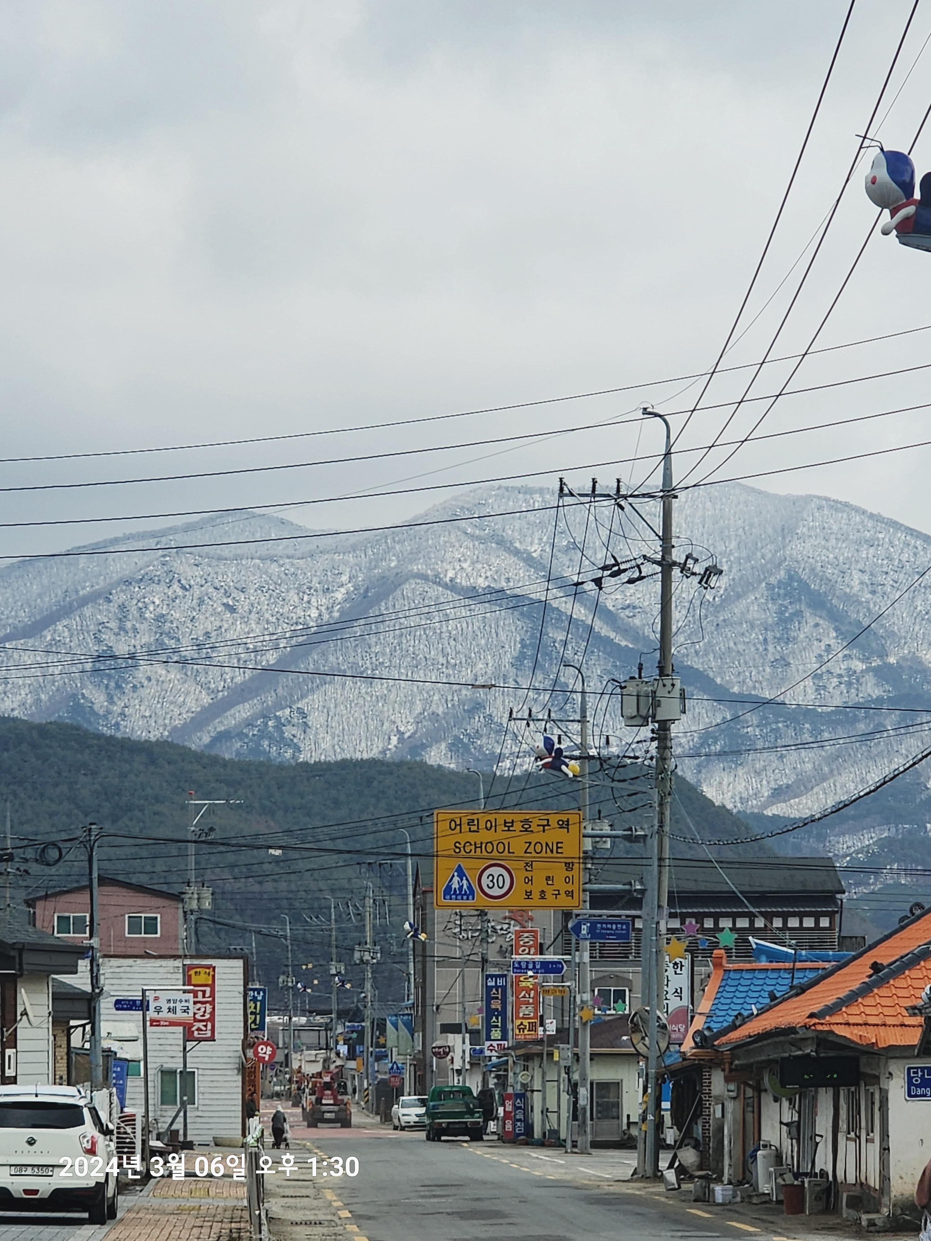멀리 산 정상에는 3월인데