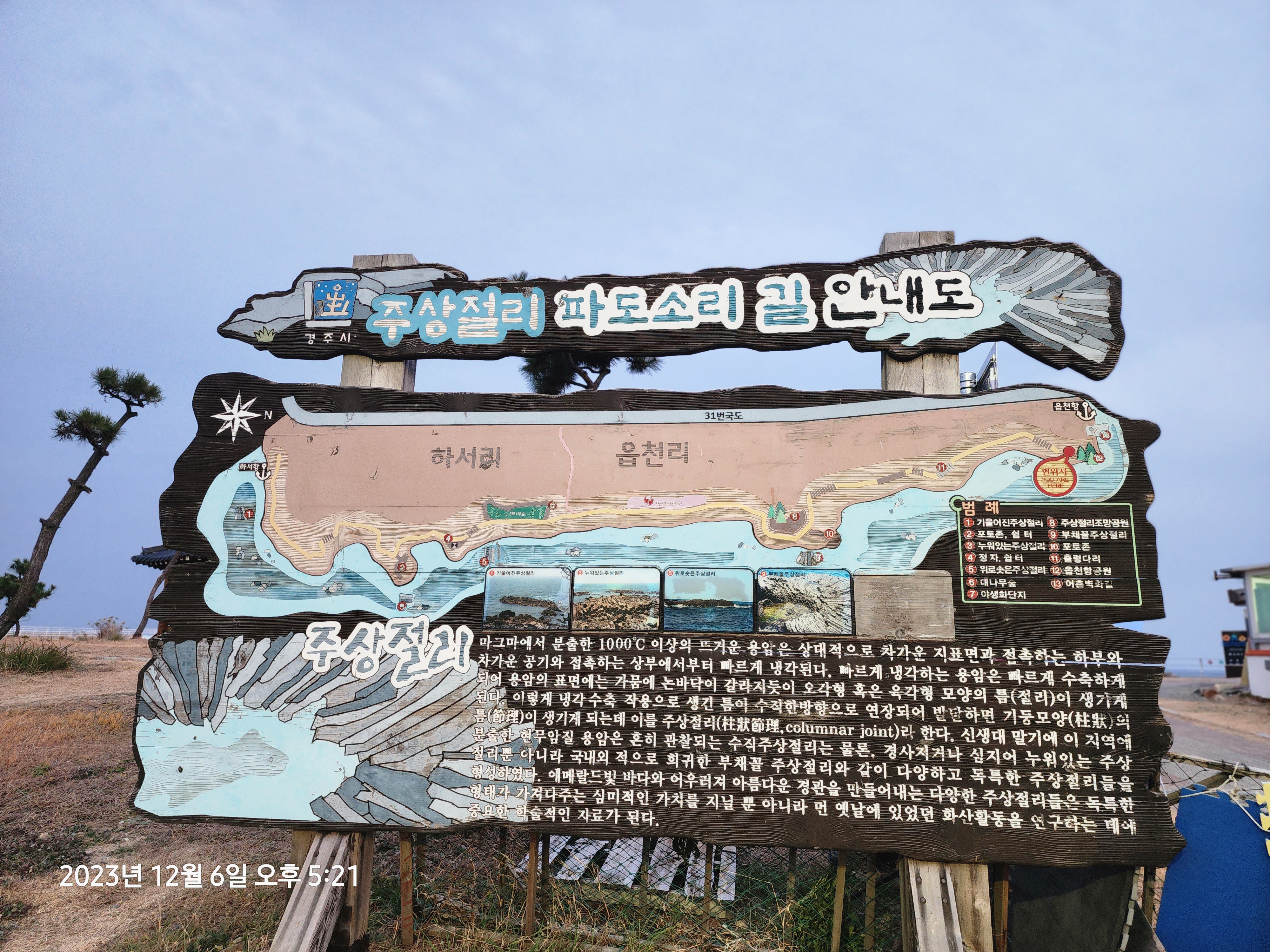 여러 모양의 주상절리가 있는 위치를 안내하는 안내판도 잘되어 있습니다.
